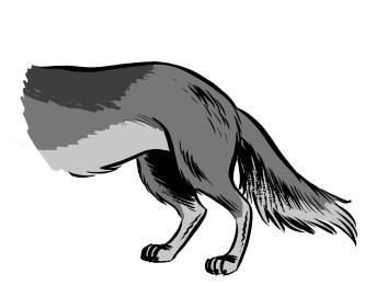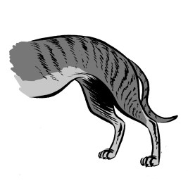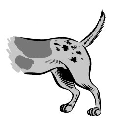 Zijn staart is heel laag, tussen zijn poten. Soms zit zijn staart zelfs tegen zijn buik aan geduwd.