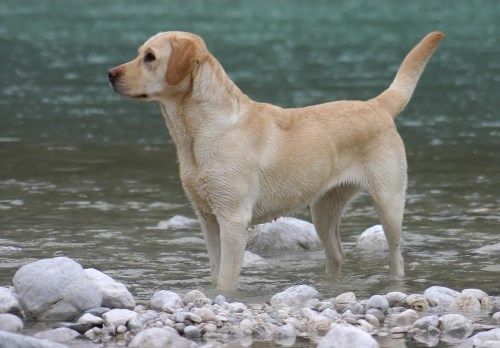 Zijn staart houdt hij hoog, hoger dan als hij ontspannen is. Maar let op: dan moet je natuurlijk eerst weten hoe de hond zijn staart heeft als hij ontspannen en rustig is. En dat kan bij elke hond anders zijn.