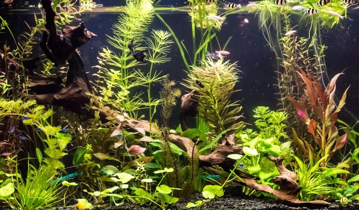 Planten zijn er om het wat gezelliger te maken in het aquarium. Ze zijn ook nodig als schuilplek voor de vissen en ze zorgen voor gezond water. Zet bij vissen die veel zwemruimte nodig hebben de planten vooral aan de randen van het aquarium. Zo houden de vissen genoeg ruimte over. Heb je vissen die eitjes leggen op planten of levende jongen krijgen die zich moeten kunnen verstoppen, zorg dan dat je de juiste planten daarvoor hebt. Denk erom dat sommige vissen planten opeten of uitgraven! Spoel nieuwe planten altijd af voor je ze in het aquarium zet, anders kunnen er slakkeneitjes of parasieten meekomen waar je vissen ziek van worden.